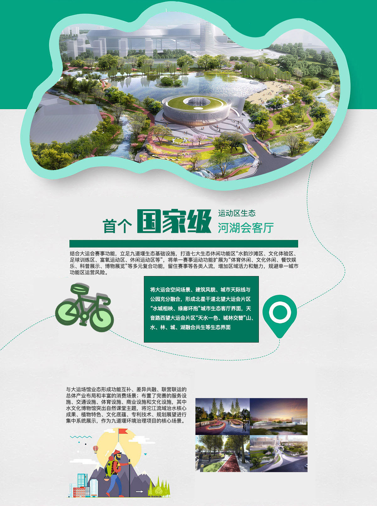 九道堰项目是沱江流域治理“大流域统筹规划、小流域单元治理、全流域智慧管理”的示范工程,跨新都、金牛、郫都三个行政区,占地180公顷,由18.1km河道及7个公园组成,总投资15.52亿元,包含河道整治、截污治污、生态构建、景观提升、智慧管理五大工程内容。